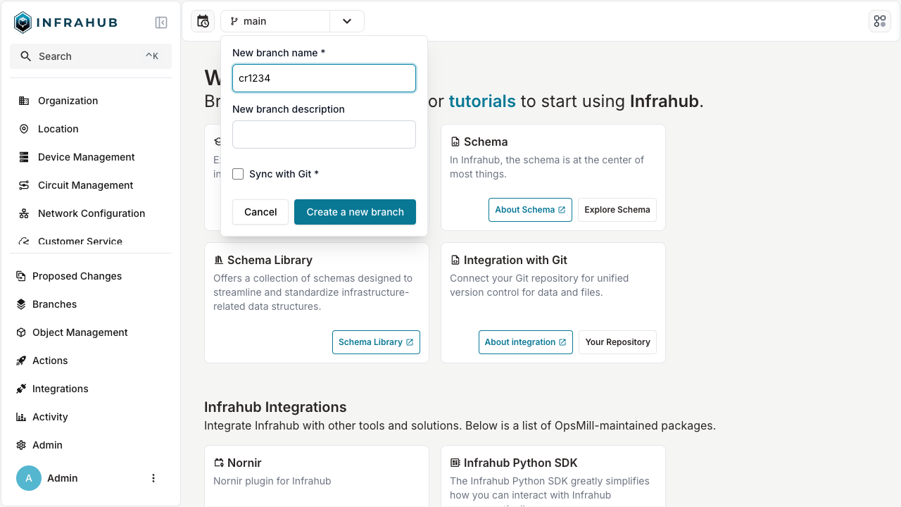BranchCreate(data: { name: "cr1234", sync_with_git: true}) {